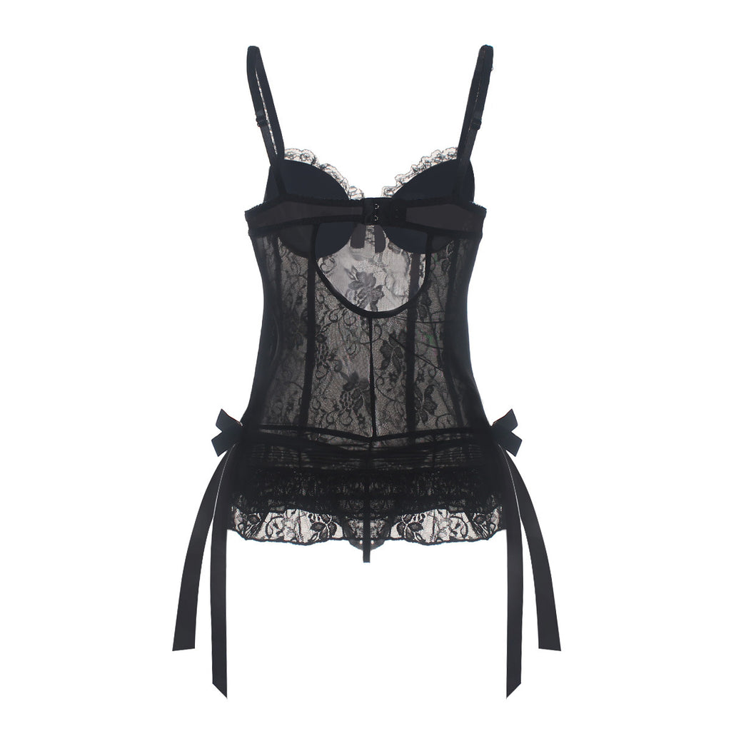 مع أخذ العظة من الكورسيهات على الطراز الفيكتوري ، مجموعة الملابس الداخلية لدانتيل الساتان هي مجموعة غامقة ومغرية إلى حد ما تضم ​​الدانتيل والأقواس بقدر ما يمكن أن تراه العين.