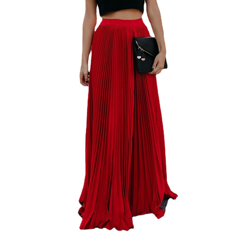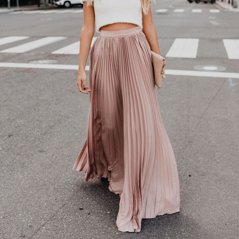 Women's Long Pleated High Waist Maxi Skirt
