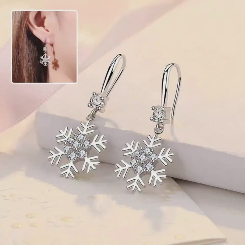 Christmas Winter White Gold-Tone Diamante Rhinestone Snowflake Dangle Earrings