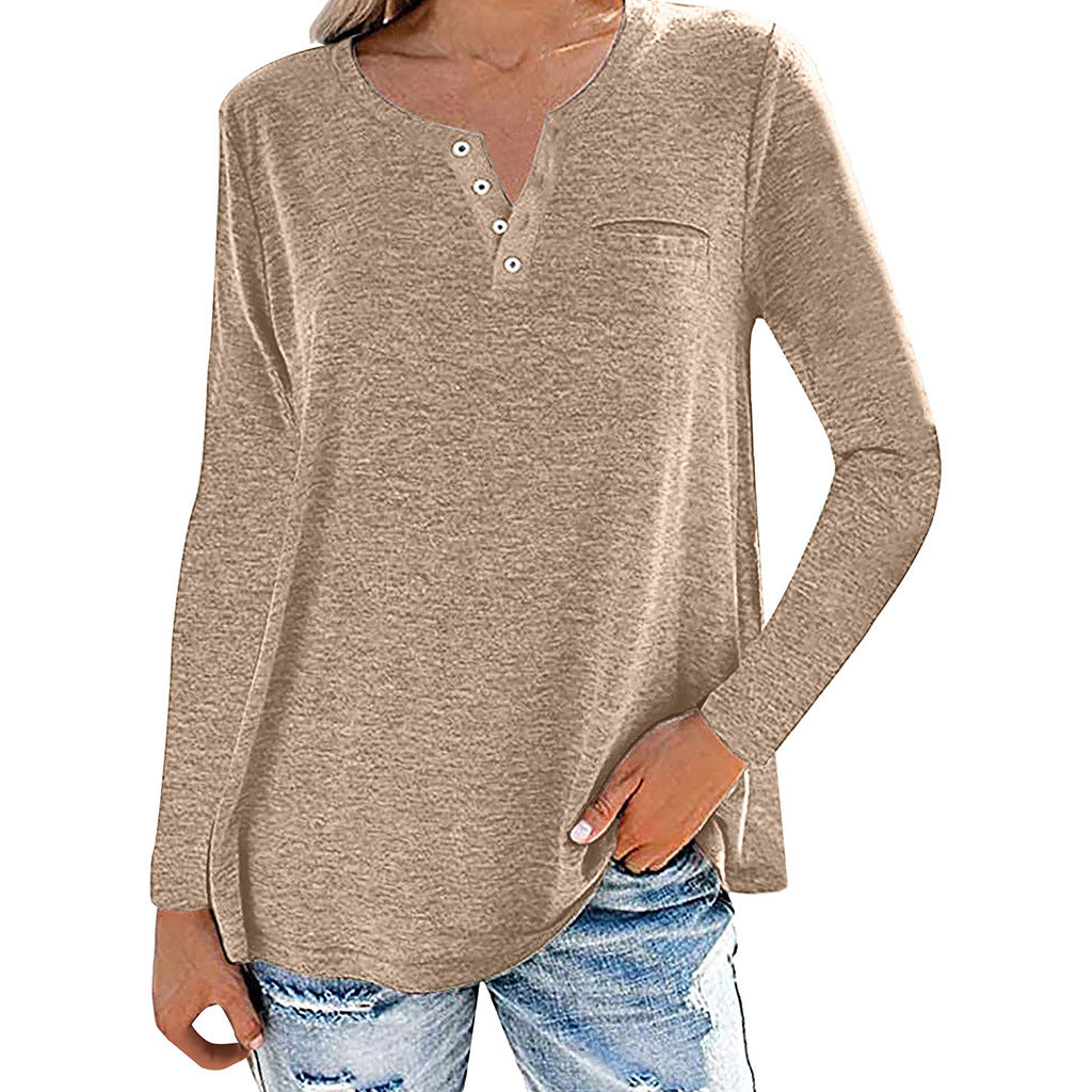 Mit den vier Knöpfen um den Hals und der dezenten Tasche rechts auf der Vorderseite ist dieses locker sitzende Langarm-Oberteil mit geknöpftem Ausschnitt eine einfache und unkomplizierte Art, sich für gemäßigtes Wetter zu kleiden.