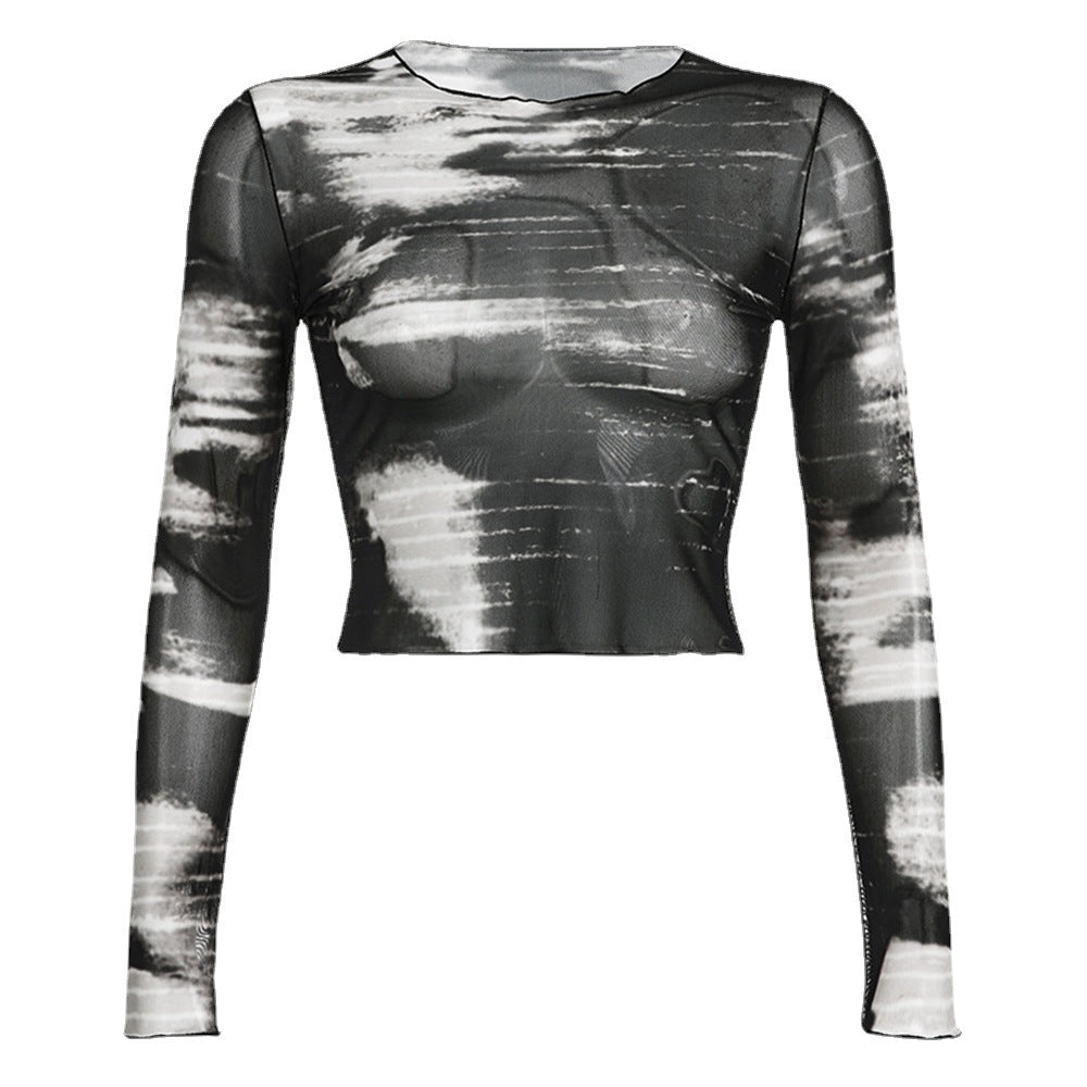 Add shimmer and detailing to your casual looks with the Women's Long Sleeve Black and Gray Crop Top. It features semi-sheer fabric for a flirtatious look.
