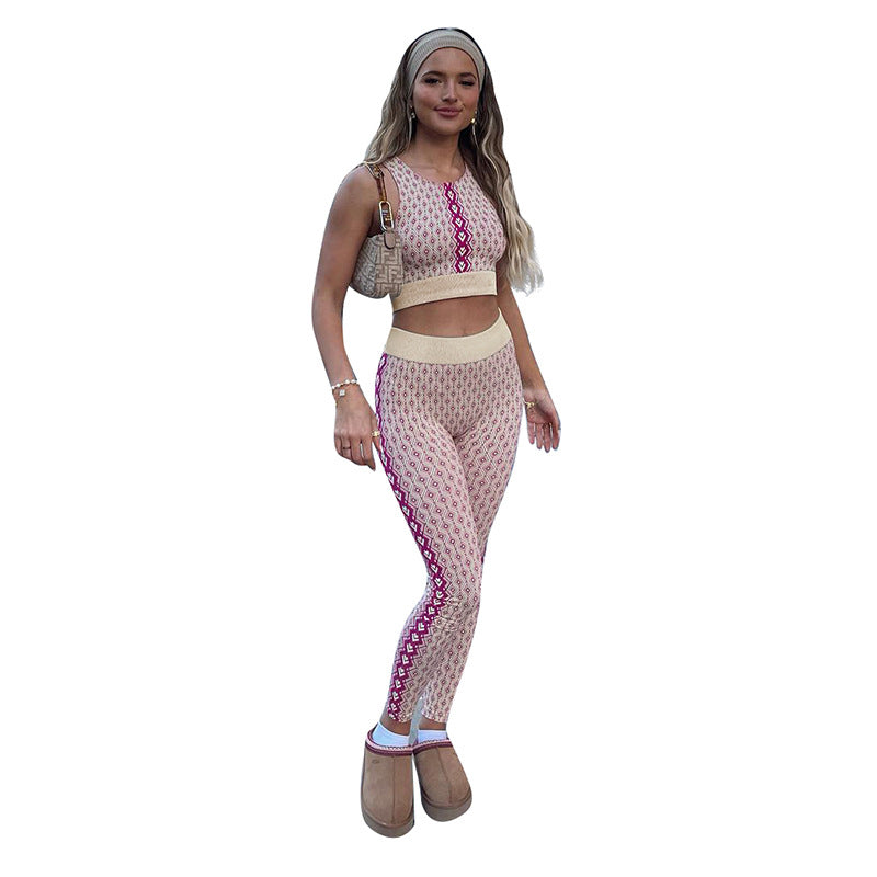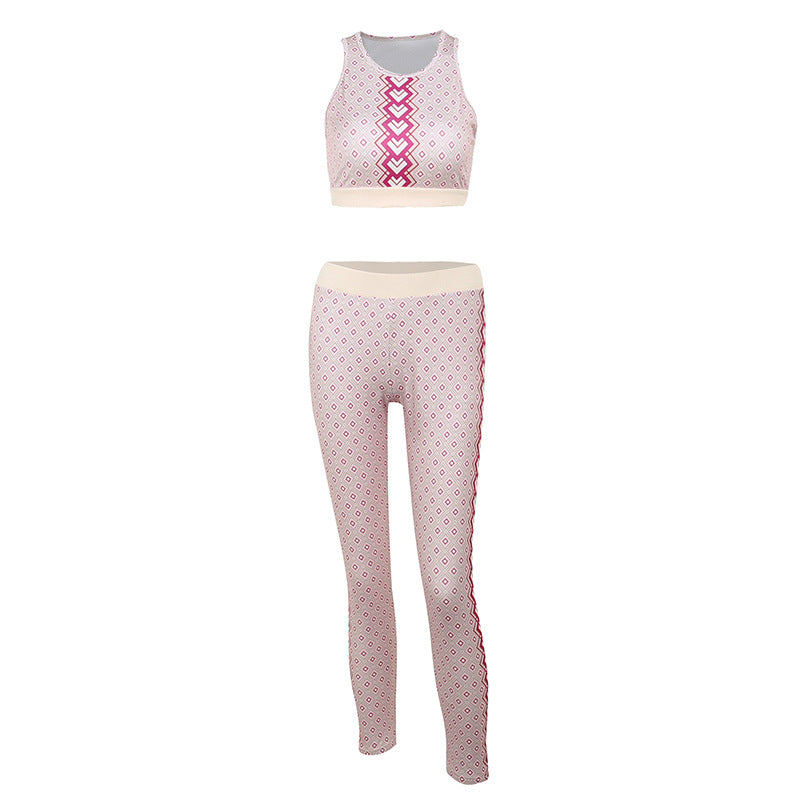 Drahseln Sie Ihre sportliche Streetwear mit dem zweiteiligen Sport -BH- und Leggings -Set der Frauen. Das hellrosa Muster verleiht dem schicken Look einen mädchenhaften Touch.