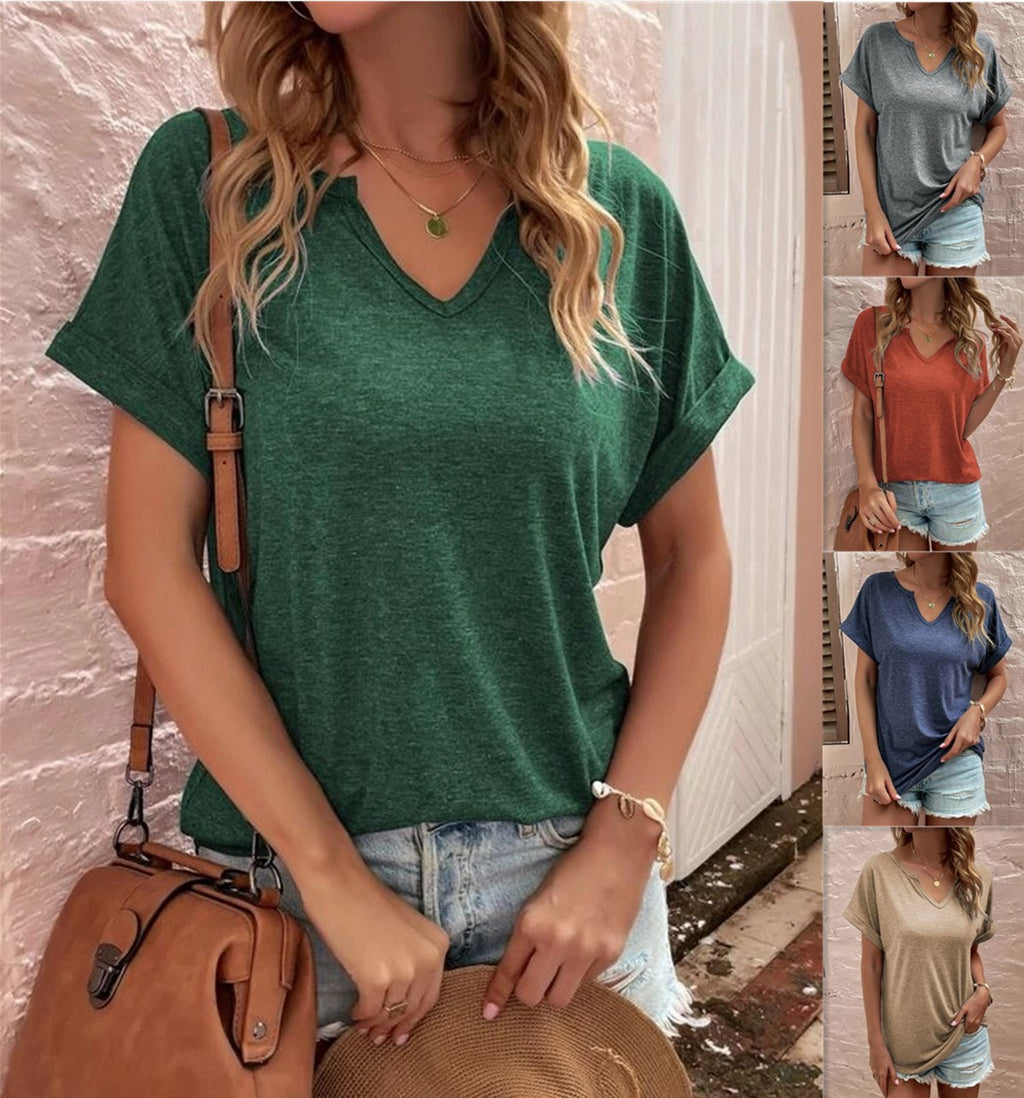 camiseta de mujer de manga corta con cuello en v y ajuste holgado