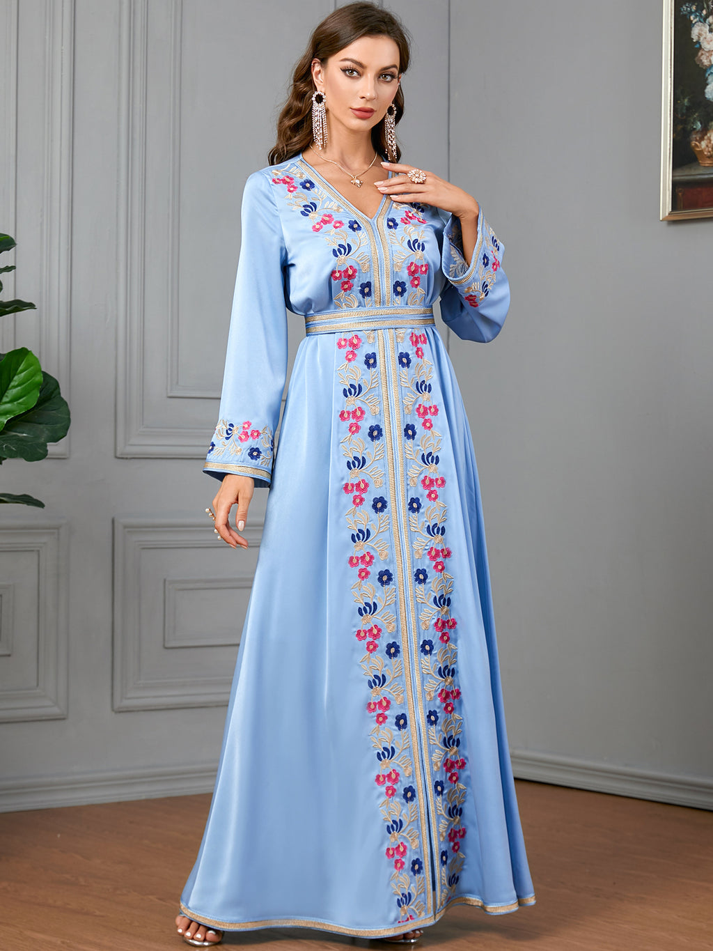 Women's Long Sleeve Midnight Blue Floral Maxi Dress
