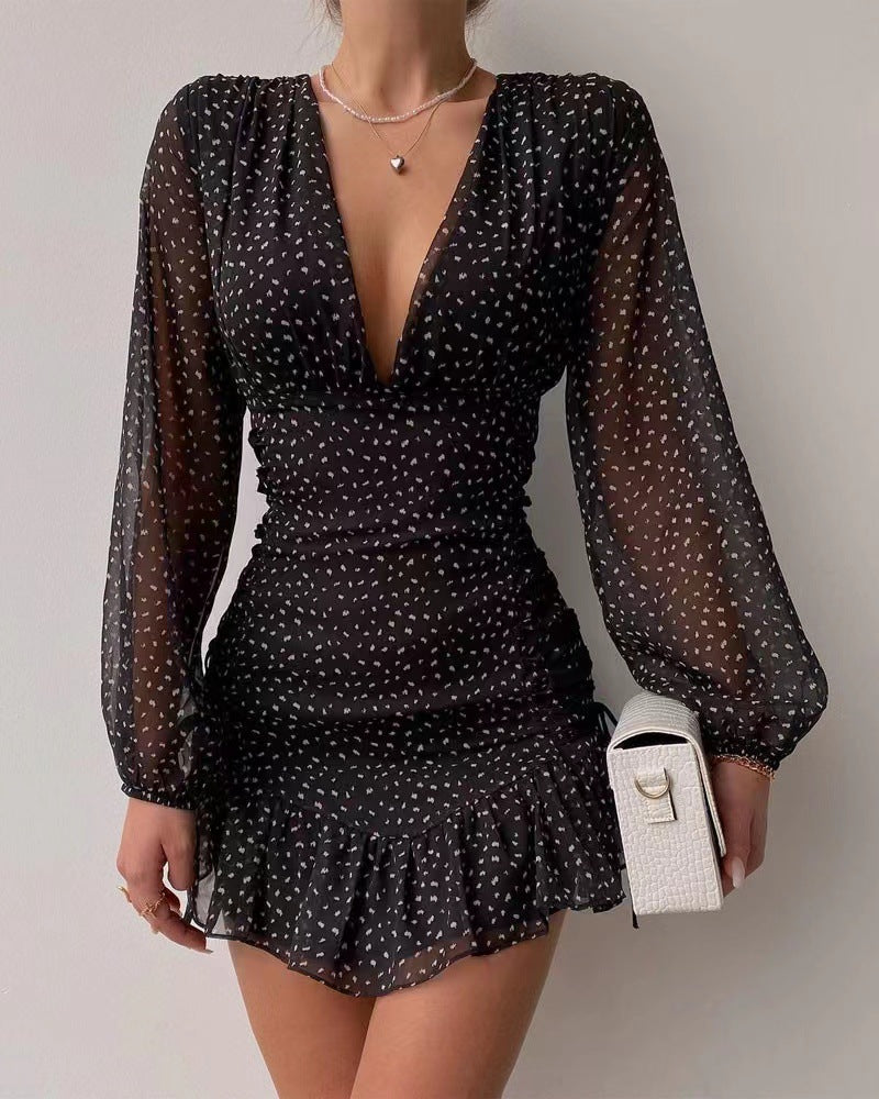 Apportez une touche de fantaisie à votre tenue d'été nocturne avec la mini-robe à manches cloche à la forme des femmes avec du col en V. Cette robe flatteuse et séduisante étreint le corps et dispose d'un col en V. De chaque côté se trouvent des manches de cloche moelleuses.