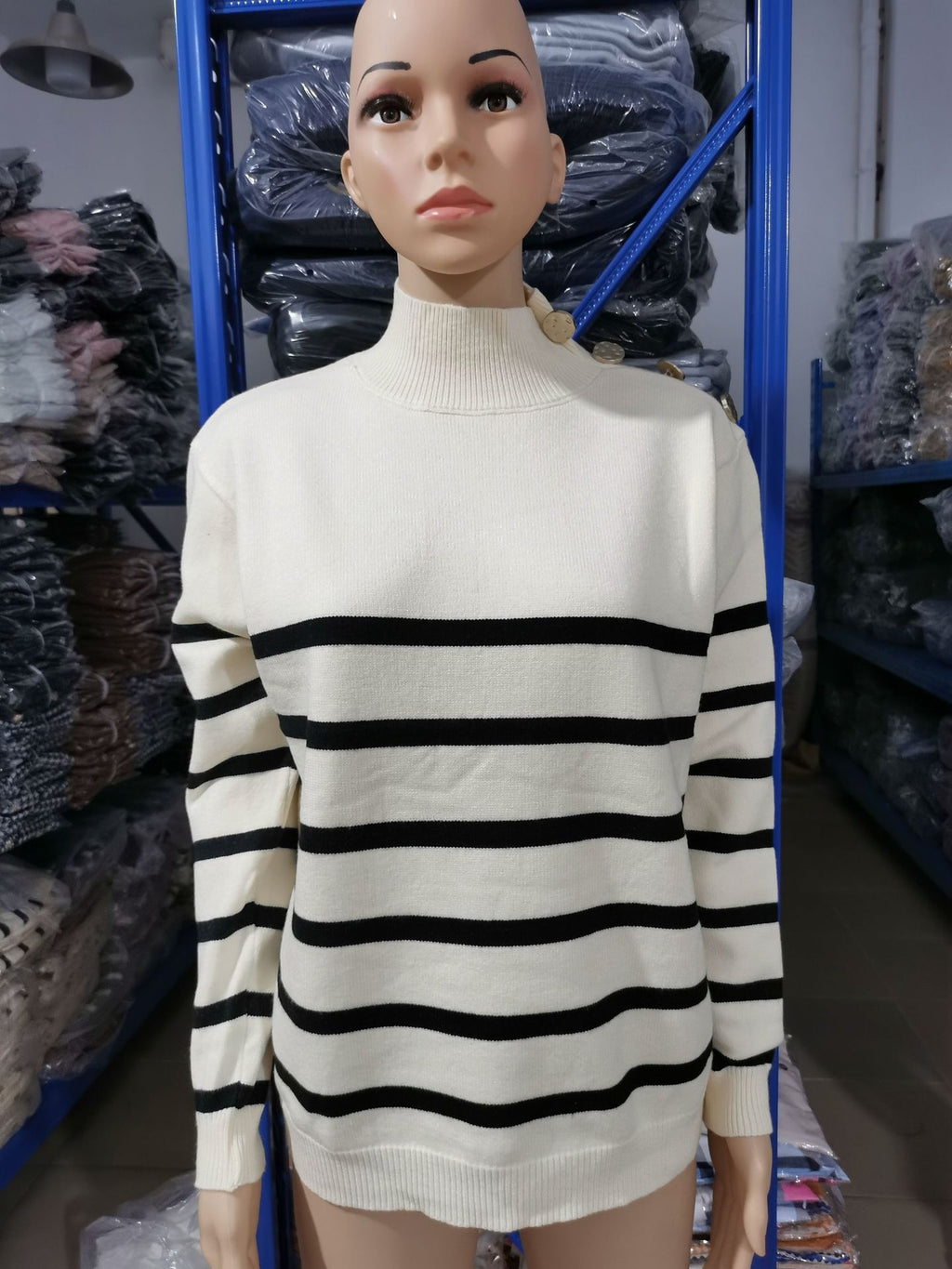 Restez au chaud et mignon cet hiver et l'automne en portant le pull rayé horizontal féminin avec un petit col roulé. Ce pull dispose d'une poitrine solide avec des rayures le reste du chemin et se présente en différentes couleurs.