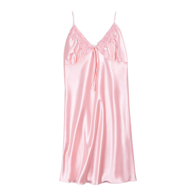 Cette robe glissante pour femmes avec un col en V de Lacy et un ourlet mini-longueur est un morceau de vêtements mignon et chic pour le sommeil. Il vient dans votre choix de différentes couleurs, qui ont toutes un léger éclat.