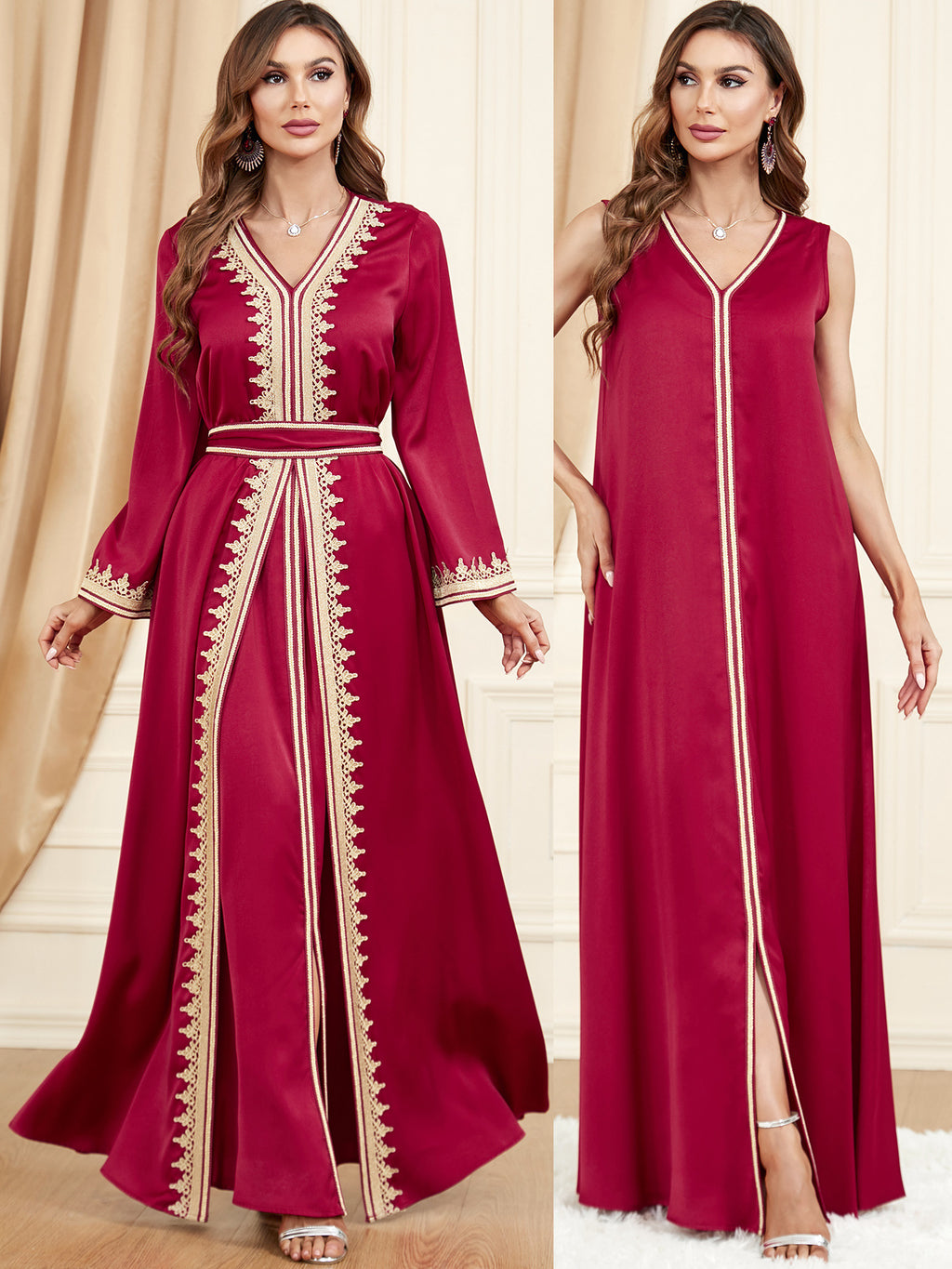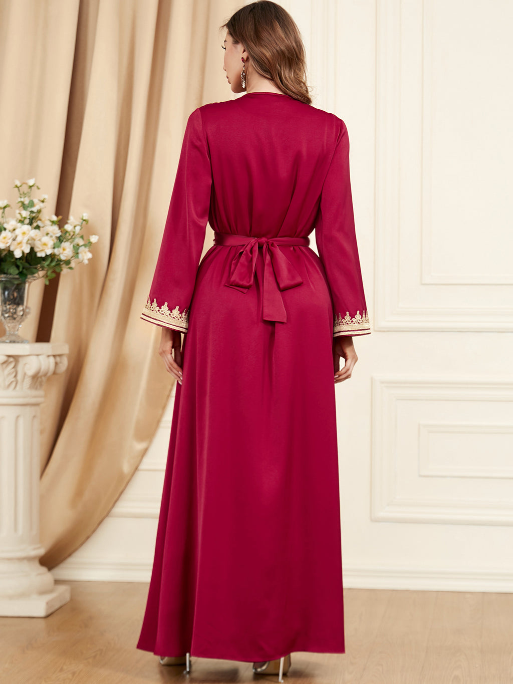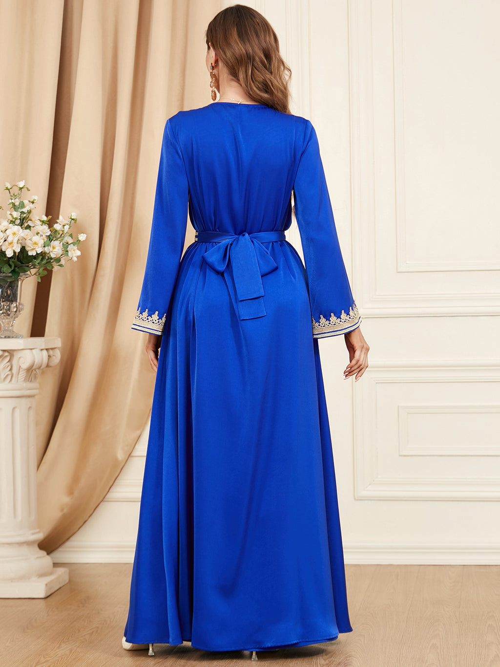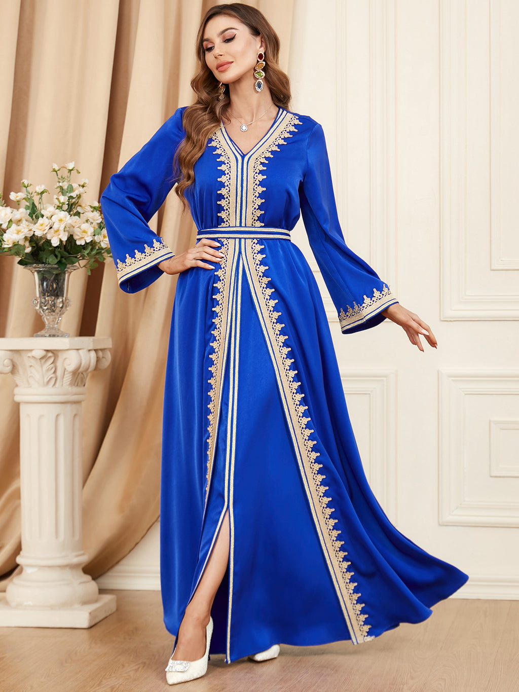 Women's Regal Long Sleeve Maxi Dress with Gold Trim