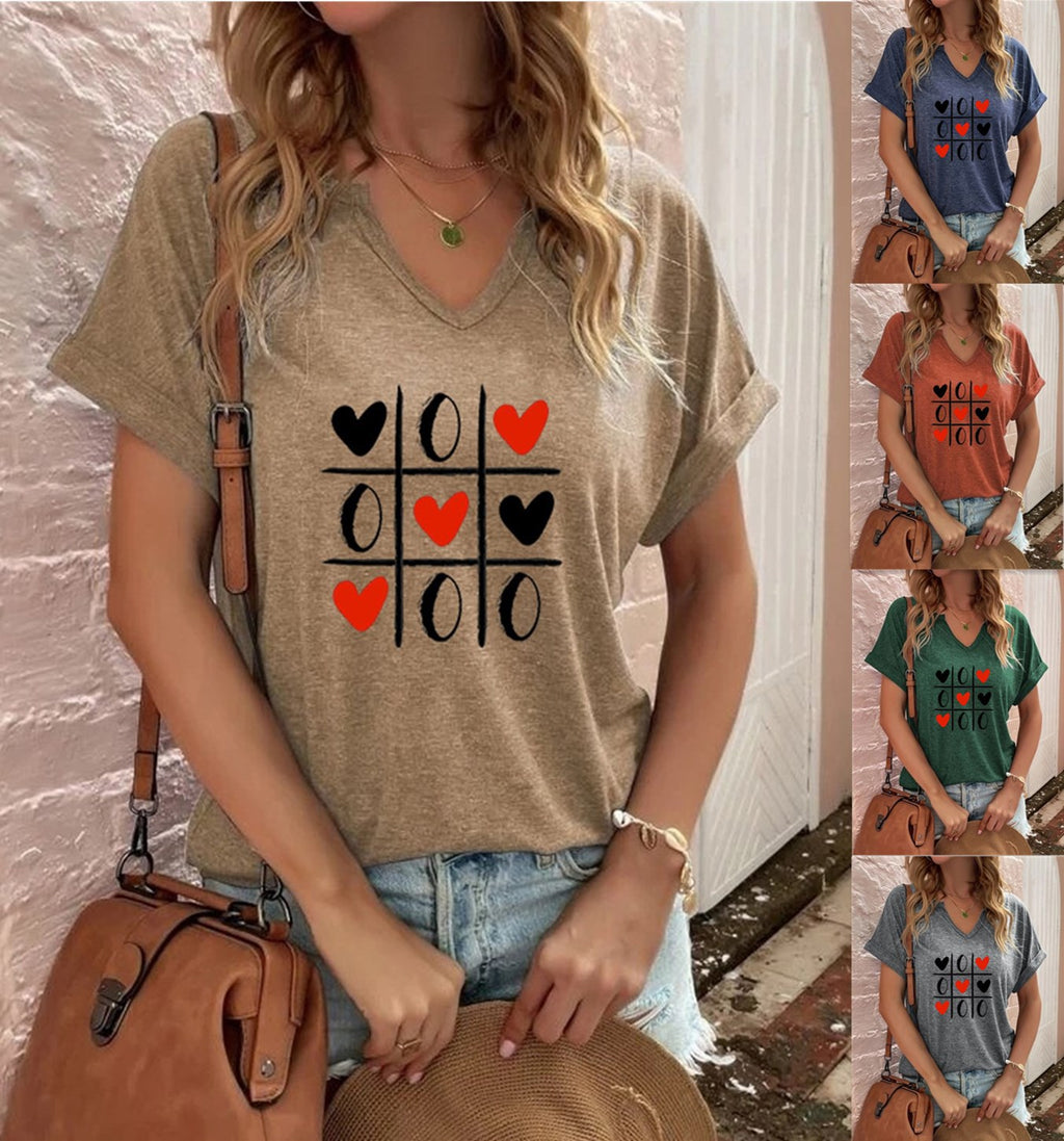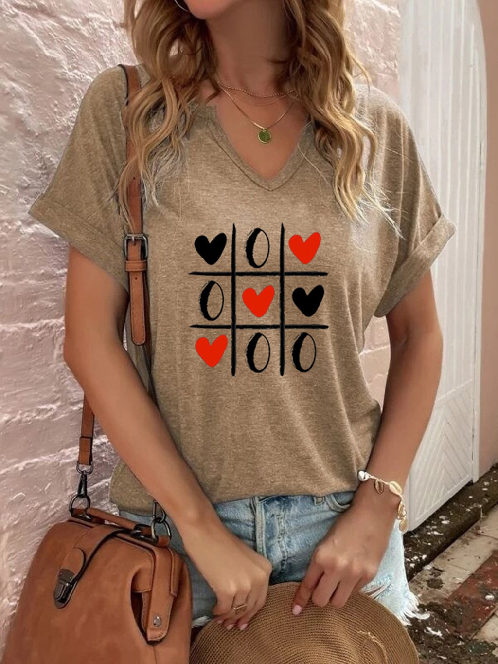 ThisTic Tac TOE HEARTS और OS महिलाओं के आकस्मिक टी क्लासिक्टिक TAC TOE बोर्डों पर एक रोमांटिक स्पिन डालते हैं। एक सूक्ष्म वी-गर्दन और छोटी आस्तीन अपने लुक को खत्म कर देती हैं।