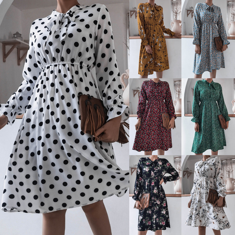 अपनी पसंद के एक विशद पैटर्न की विशेषता वाली लंबी आस्तीन के साथ महिलाओं के मॉक नेक मिडी ड्रेस के साथ एक आंख को पकड़ने वाला बयान दें। यह विभिन्न रंगों में आता है और साथ ही किसी भी स्वाद के अनुरूप होता है।