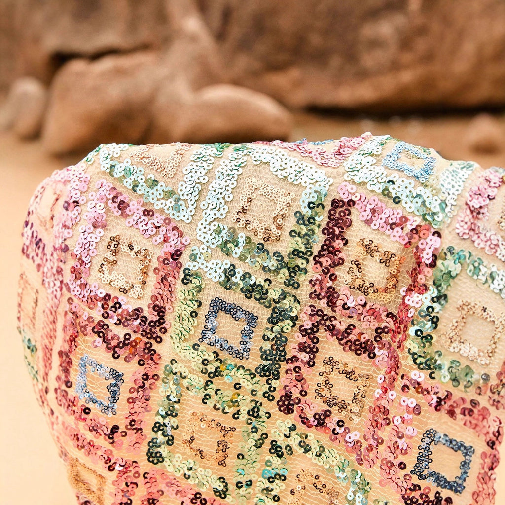 Distinguere in questa gonna corta con cuciture di paillettes geometriche e finitura glitter. Perfetto per feste, spettacoli o aggiungi scintillio al tuo look da notte.