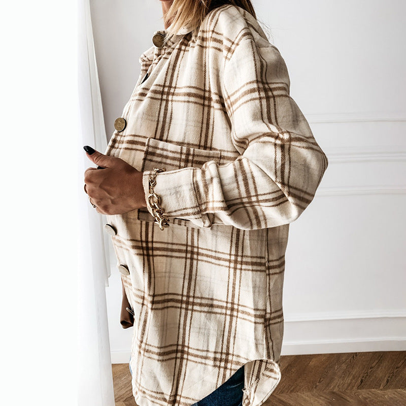 Porta la flanella a nuovi livelli con il overs-giù per il collare a pedaggio ispirato alla flanella femminile con un colletto a riposo. Ha un orlo più lungo della maggior parte delle camicie in flanella ed è completo di bottoni di grandi dimensioni e decorativi.