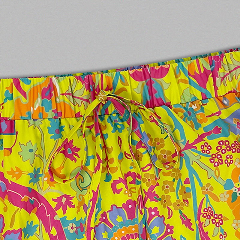 鮮やかなカラーブロックの花柄と快適なドローストリングウエストを備えたボヘミアン風のマキシスカート。ビーチの日、休暇、夏のワードローブにリラックスしたがスタイリッシュな雰囲気を追加するのに最適です。
