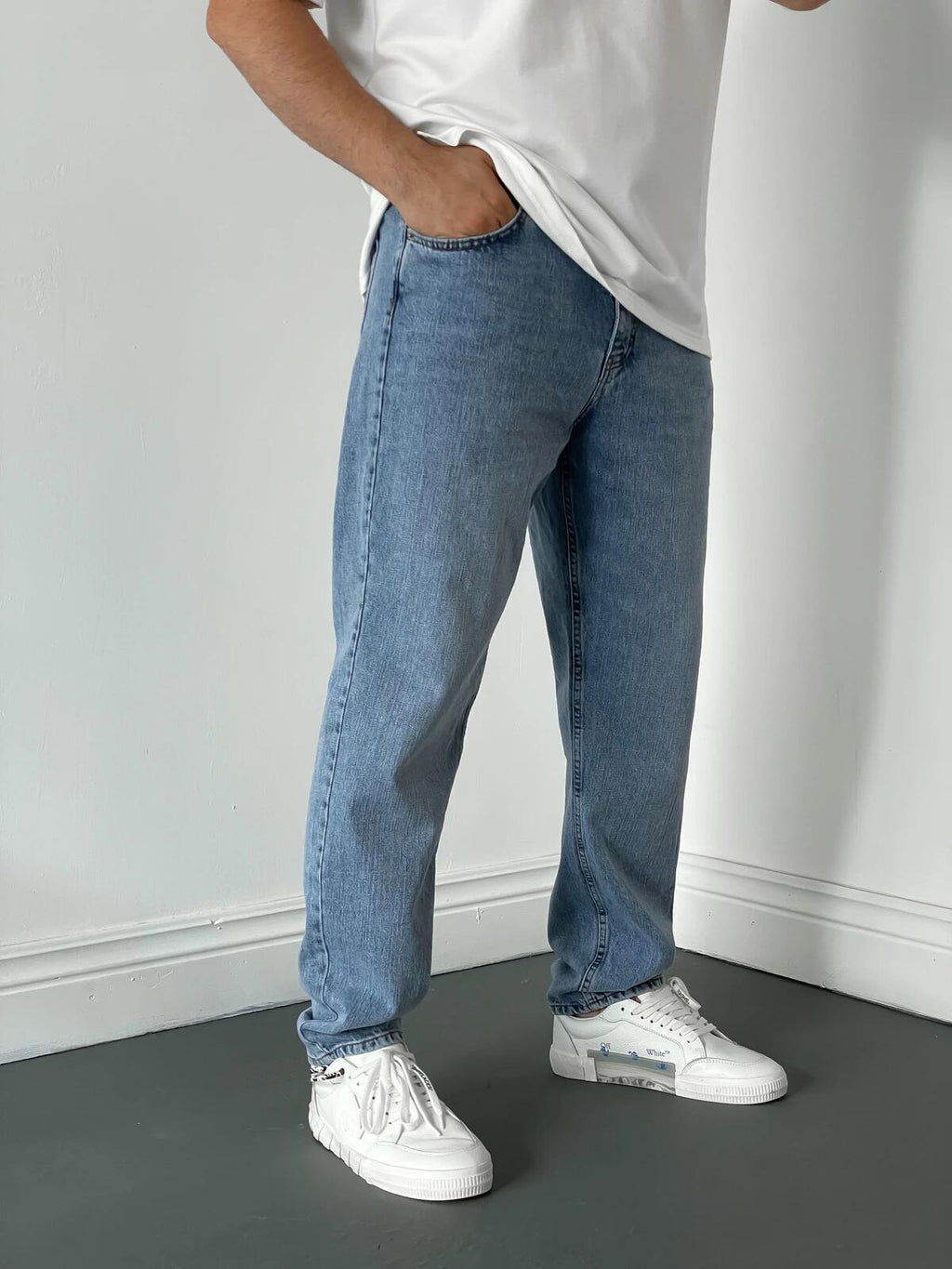 メンズワイドレッグストレートスタイルのデニムジーンズ