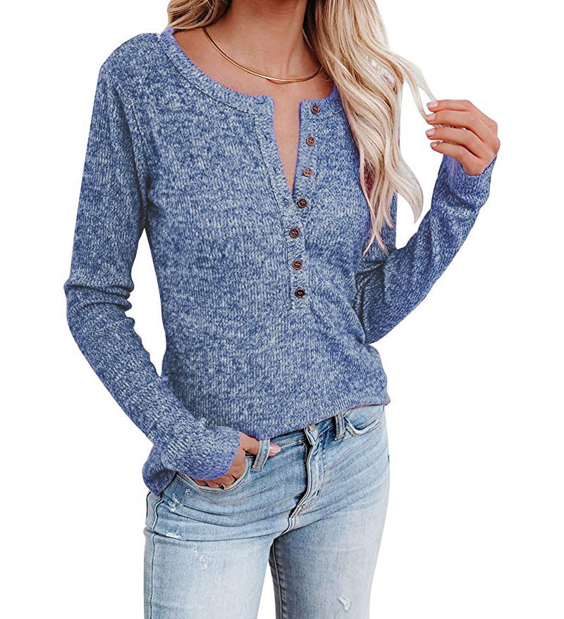 カジュアルなワードローブに最適な、この長袖のUネックバットタウン女性のブラウスは、用途が広く快適です。開いた状態または閉じたボタンのダウンフロントを備えています。