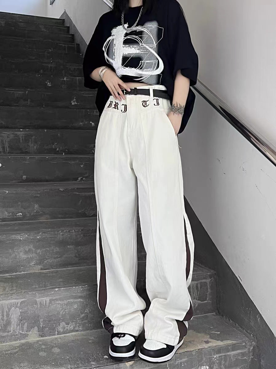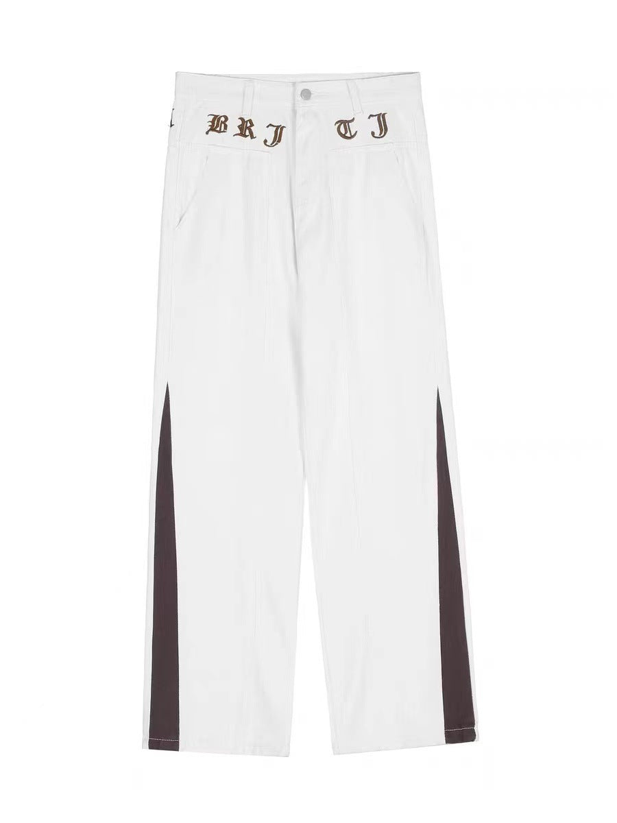 Verhoog je dagelijkse stijl met de losse fitting broek van de dames met een wit kleurenschema met stroken donkerbruin rond de kalveren.