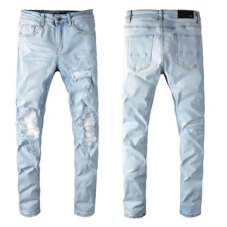 Geniet van de veelzijdigheid en stijl van het rechte poot van de heren, een skinny jeans met scheuren in je kast. Deze jeans zijn er in een lichtblauwe kleur die goed werkt met elke top.