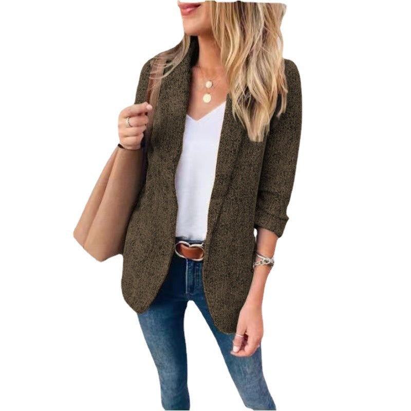 Coloque um toque final chique no seu conjunto, usando o blazer semi-casual de 3/4 de comprimento feminino. Ele vem na sua escolha de cores neutras para garantir que ele se encaixe em qualquer conjunto.