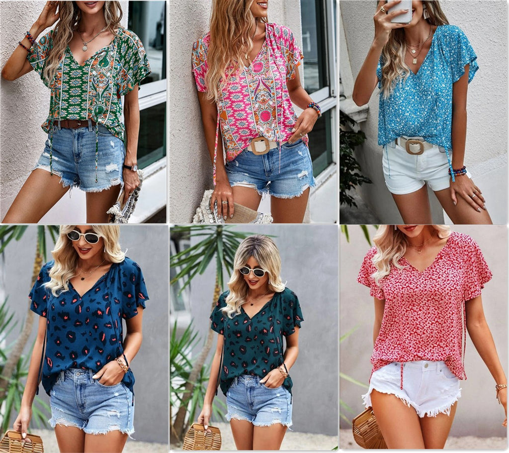 Expresse -se de qualquer maneira com o vibrante e colorido chique, estilo Boho Chic, com mangas curtas, com sua escolha de padrões. O ajuste solto é confortável e versátil em como você pode usá -lo.
