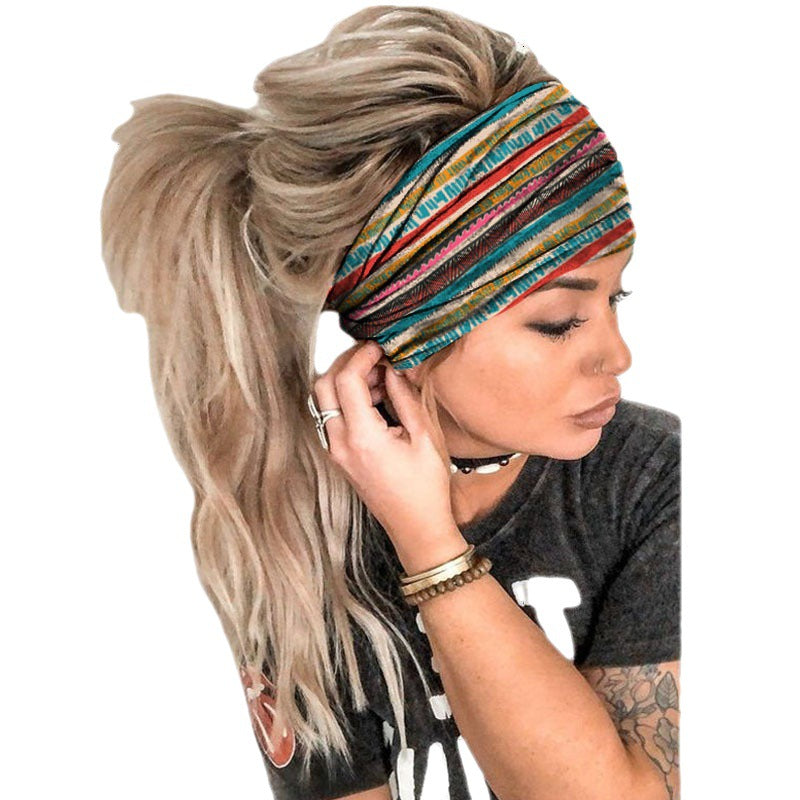 將頭髮從眼睛中脫穎而出,並使用女性頭部包裹波西米亞風情的頭帶以各種閃亮色調的條紋進行風格。