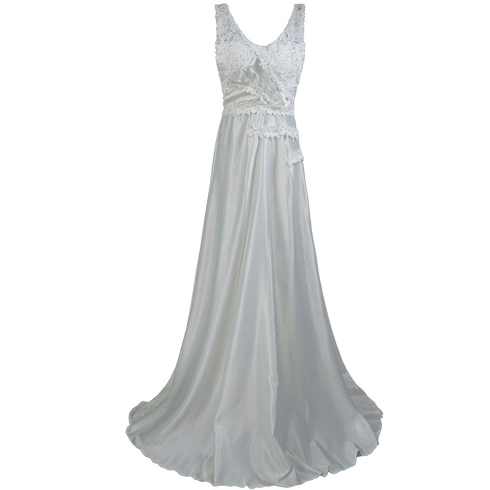優雅而精緻,女士無袖蕾絲緊身胸衣和絲滑的裙子長裙是婚禮,舞蹈及以後的美麗選擇。