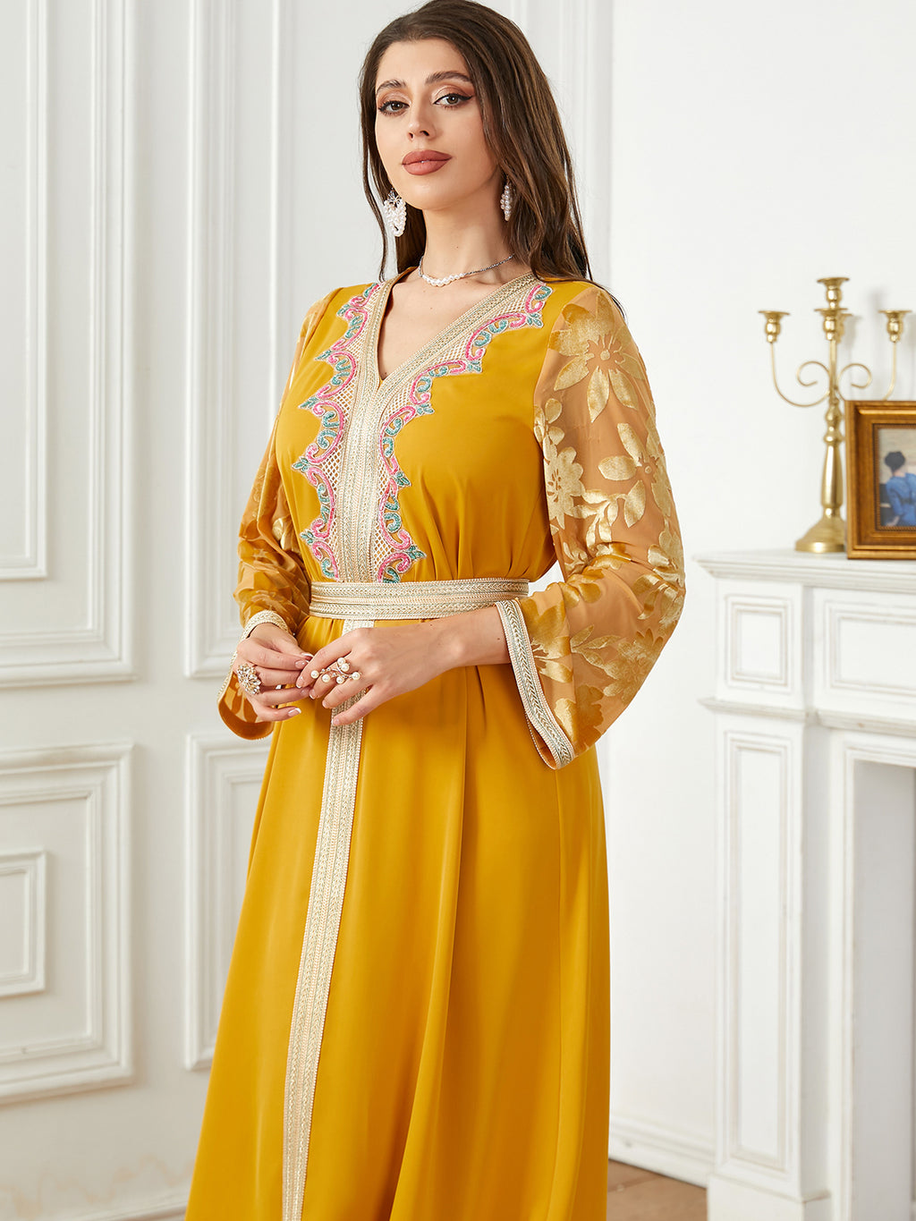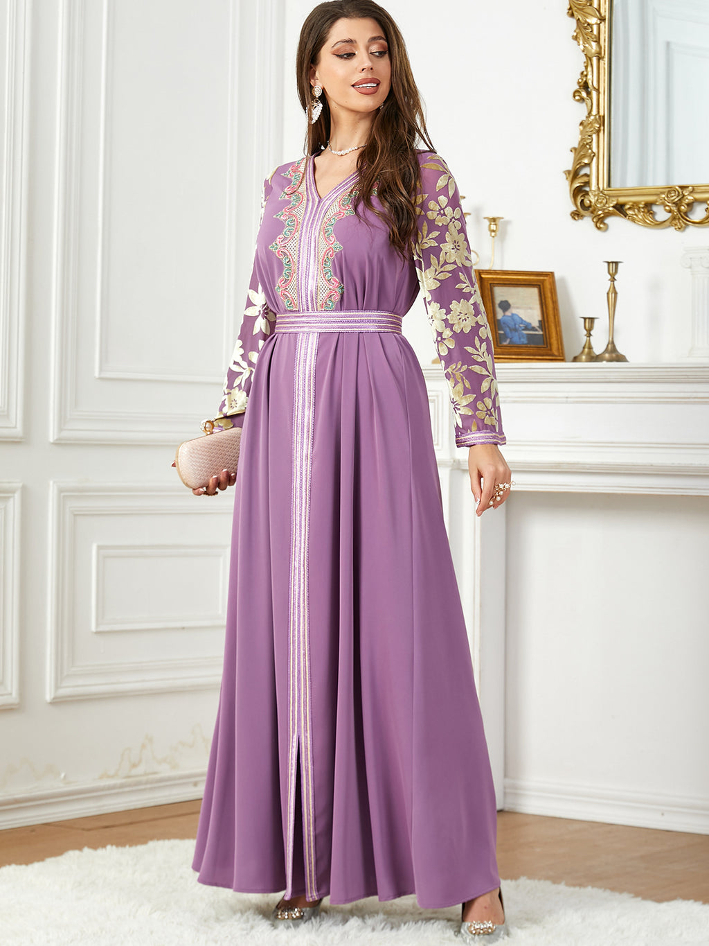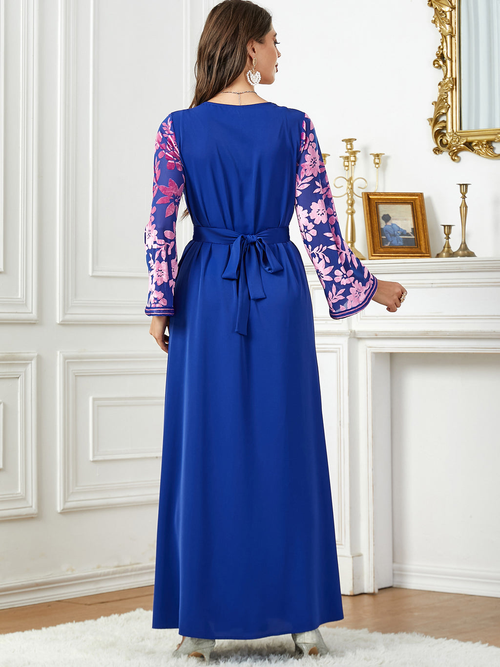 Women's Long Sleeve Maxi Dress with Floral Patterned Sleeves