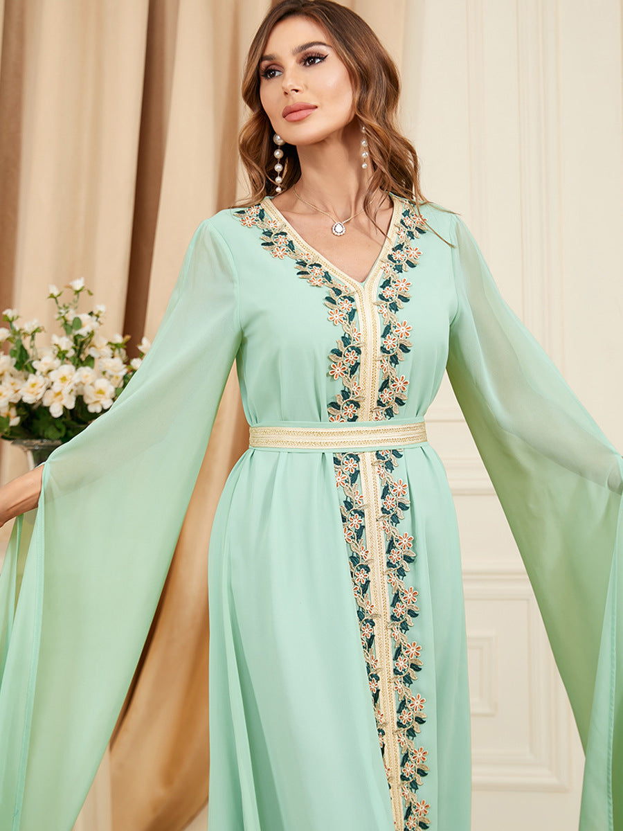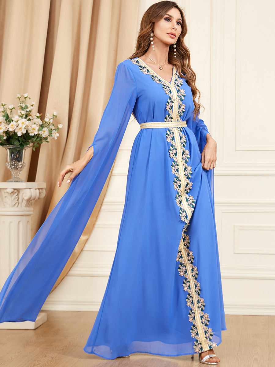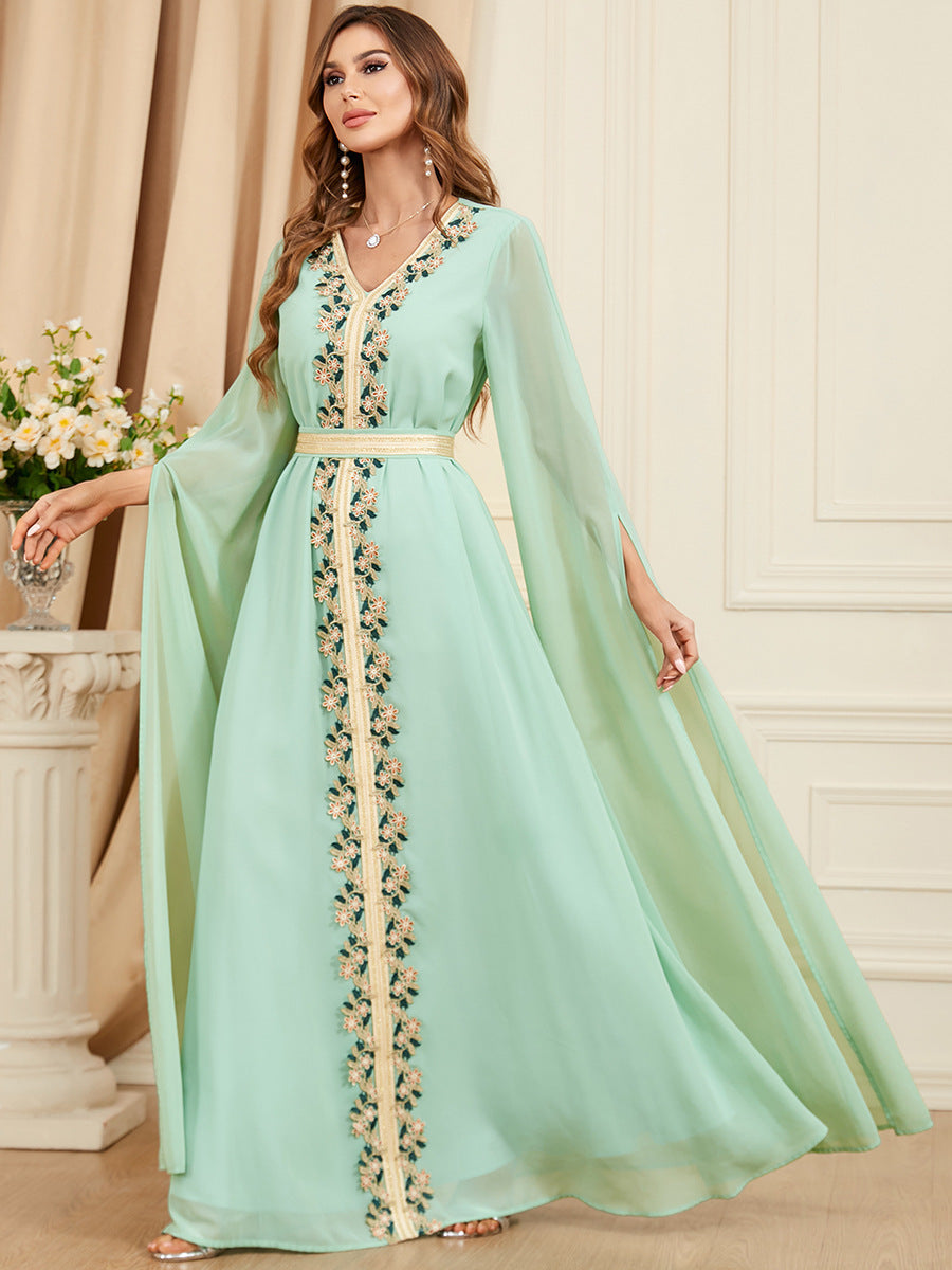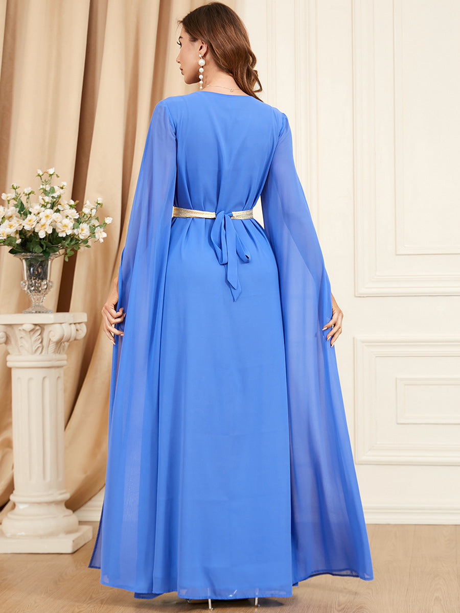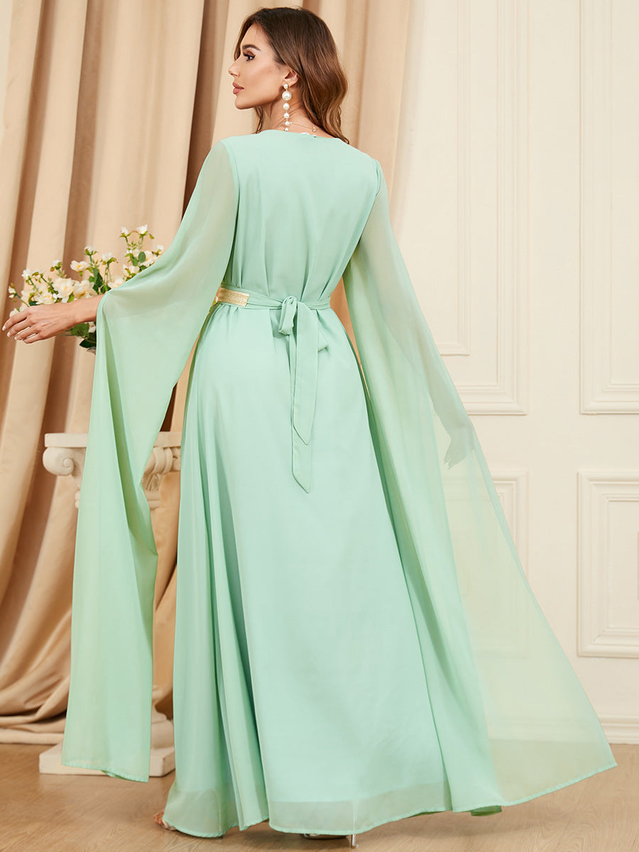 Sweep into the room wearing the Women's Maxi Dress with Extra Long Sleeves. The sheer sleeves extend down to the hem of the dress for a dramatic look.